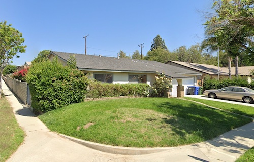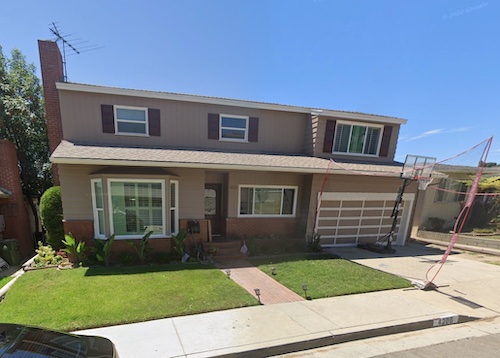 From Zillow: "Very Unique property, Escape into your own private Citadel. Surrounded by a 7 foot cement block wall fence. Security gate entrances to a home with 2700 sq/ft of living area and covered and uncovered parking spaces for over 8 cars. Home has 3 bedrooms 1.5 baths, spacious living room with Brick fireplace ,Dining area off Remodeled Kitchen. Downstairs garage was converted to a 900 sq/ft Family room , In-law unit ,or Au-pair .Also has a separate room for office space. Out side the Kitchen is a 30×24 Covered Patio and above this patio is another patio with a 20×20 Gazebo. There are 2 handicapped ramps for easy travel around this .22 acre lot. Also there is a 18 x10 storage shed or work shop. Extras include Central heat and A/C Handicapped stair lift to lower and upper stories. some dual pane windows." More pics here |
